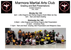 Nobody’s belt or stripe will be delayed if you can’t make the Dec 15th class.