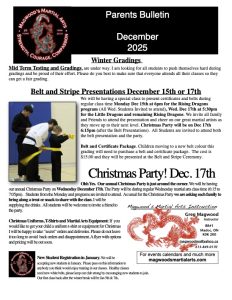 our annual Christmas Party on Wednesday December 17th. The Party will be during regular Wednesday martial arts class time (6:15 to