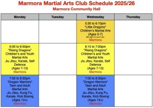 Marmora Martial Arts Club Schedule 2025/26